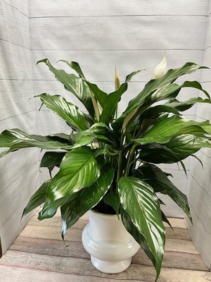 6" peace lily in an urn.